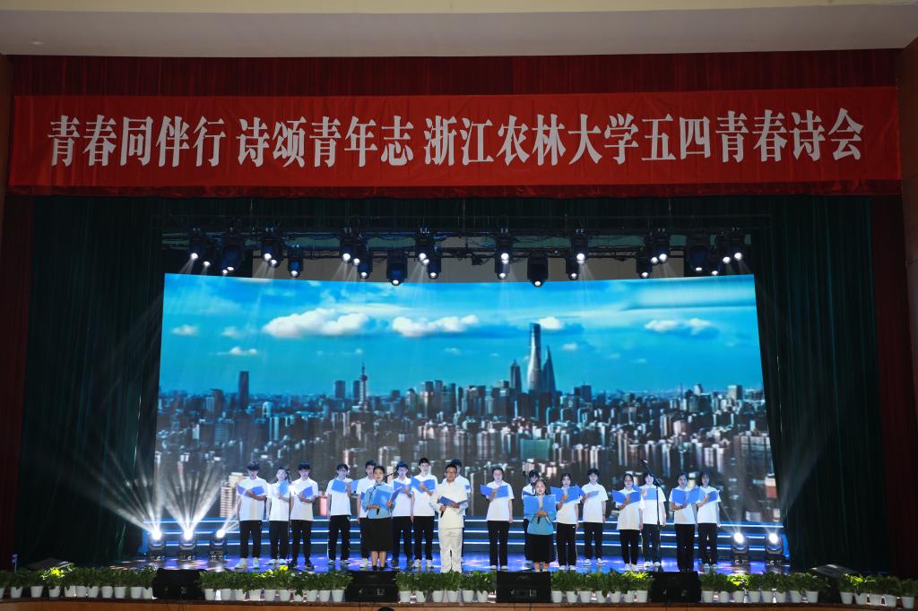 詩會通過詩歌朗誦、舞蹈、歌曲、器樂合奏和視頻等多種形式的巧妙融合,展現出我校青年師生在習近平新時代中國特色社會主義思想指引下,傳承五四精神,自信自強、守正創新,踔厲奮發、勇毅前行,忠誠盡職、奮勇爭先的堅定信念和矢志決心。