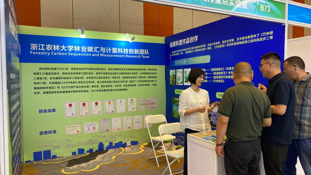 8月15日至16日,國家發展改革委、中央宣傳部、自然資源部、生態環境部、浙江省政府將聯合在湖州市開展以“綠水青山就是金山銀山”為主題的全國生態日主場活動。我校林業碳匯團隊、生態文明研究研究專家代表,宣傳部等部門負責人等受邀出席主場活動,并參加了生態文明建設經驗交流會等系列活動。在國際綠色低碳技術展上,我校林業碳匯與計量科技創新團隊的介紹,服務項目與項目推廣以及低碳科普作品等內容展示吸引了眾多領導、專家關注。