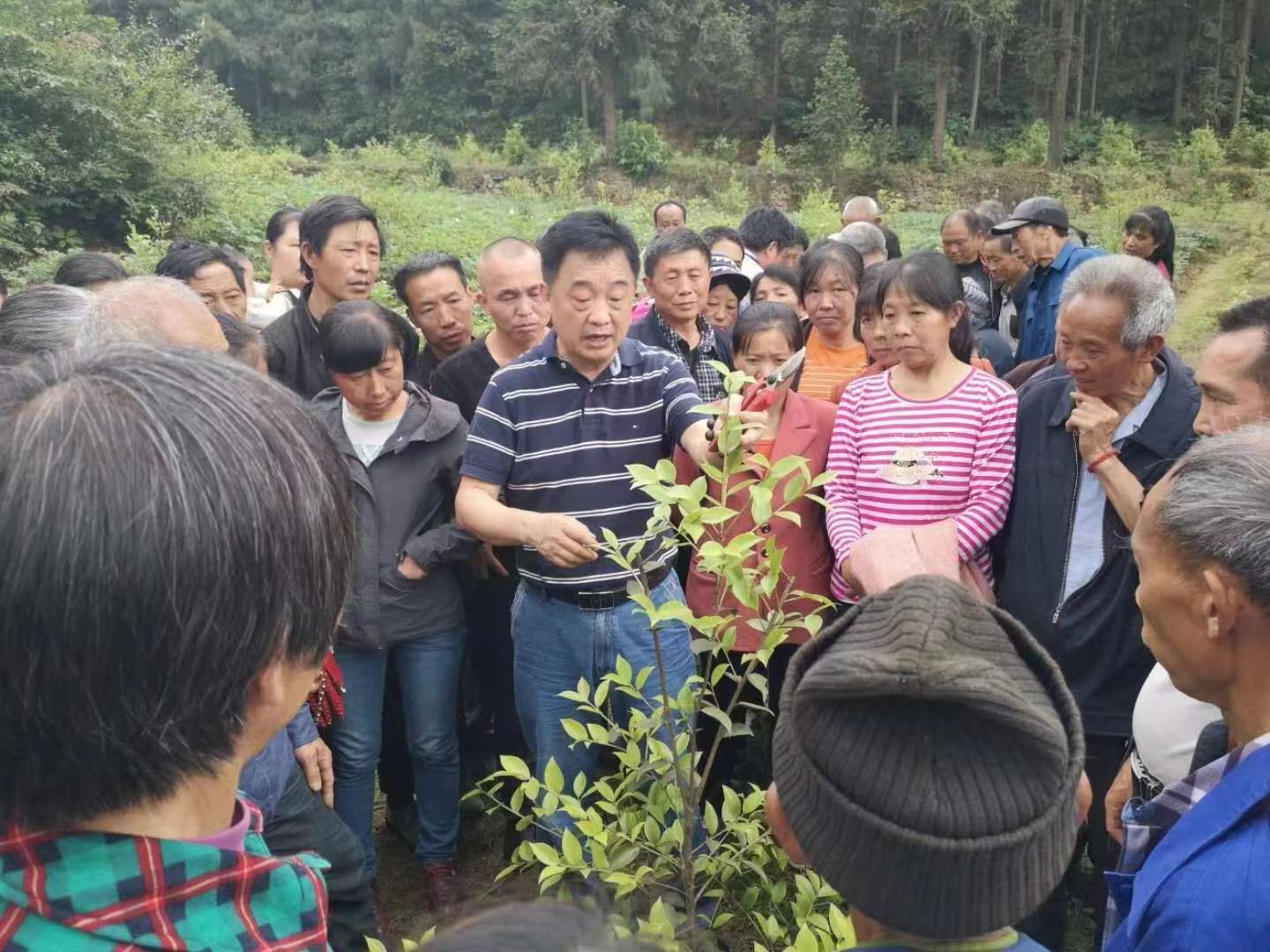 在敘永縣服務(wù)三年期間,他開展技術(shù)培訓(xùn)12期、受訓(xùn)600多人次,贈(zèng)送各類技術(shù)書籍200多冊(cè)。就在科技服務(wù)的最后一天,吳柏林還忙碌在敘永鎮(zhèn)金桂村油茶基地,現(xiàn)場(chǎng)傳授油茶整形修剪技術(shù),手把手地教,通過實(shí)地操作,使種植大戶明白油茶整形修剪的道理和益處,并能詳細(xì)掌握如何進(jìn)行油茶修剪的方法。