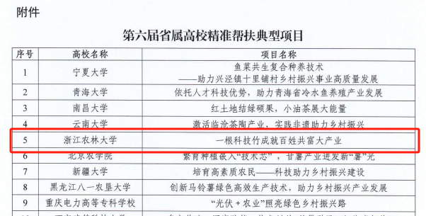 《一根科技竹成就百姓共富大產業》入選“第六屆省屬高校精準幫扶典型項目”