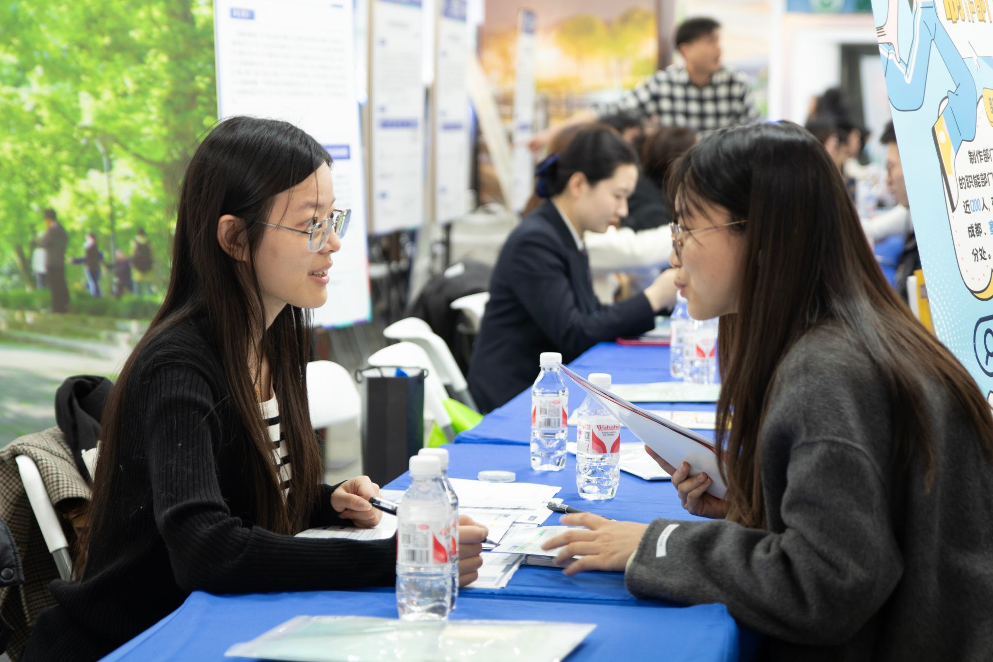 招聘會現場名企云集,浙江交工集團、新和成股份、千年舟新材、胡慶余堂等知名企業攜優質崗位亮相,必勝客、肯德基等連鎖品牌與上海種業集團、浙江省一建等農業建筑領域企業形成矩陣,崗位覆蓋技術研發、生產管理、市場營銷、教育服務等多領域。據統計,超千名畢業生懷揣精心準備的簡歷穿梭于展位間,與企業HR展開深度對話。
