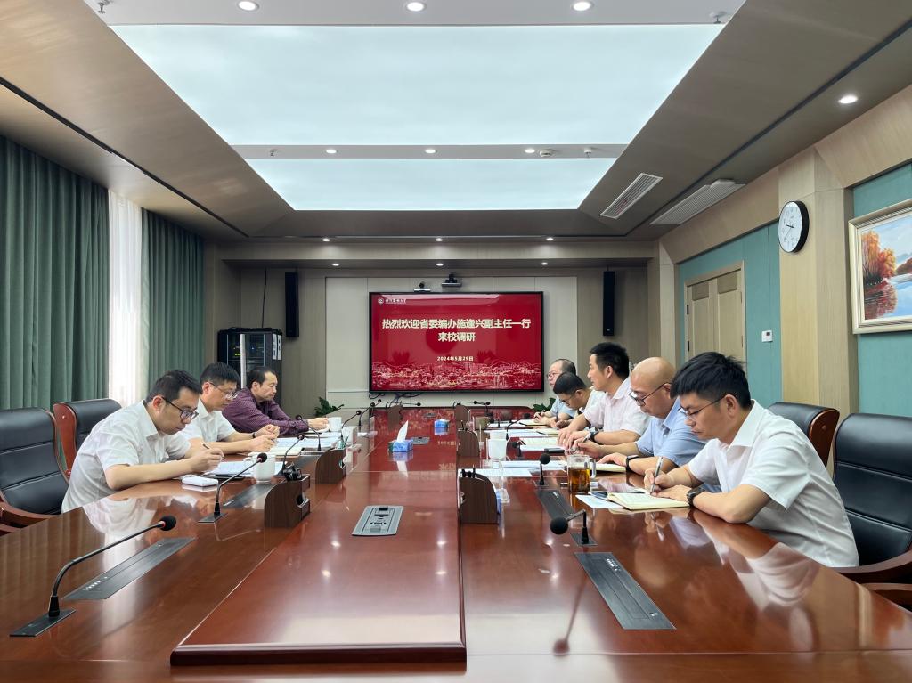 5月29日,省委編辦副主任施逢興一行來校調研。副校長徐愛俊主持座談會,組織部、人事處相關人員參加座談交流。