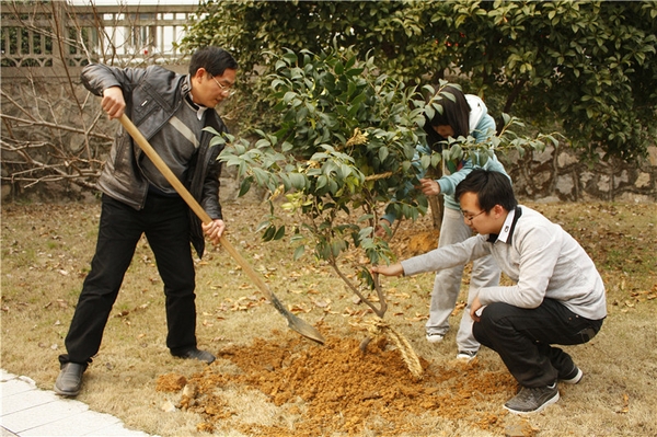 3月11日下午,天目學院院在桃李苑組織開展了以“師生共建師生林 和諧天目一家親”為主題的植綠活動。學院領導師生一起拿起鐵鍬松土、種樹、澆水,干勁十足,熱火朝天。經過一個下午的努力在桃李苑種上了山茶、桂花、紅梅等十余株樹苗,為美麗的衣錦校園又增添了幾分綠意和生機。