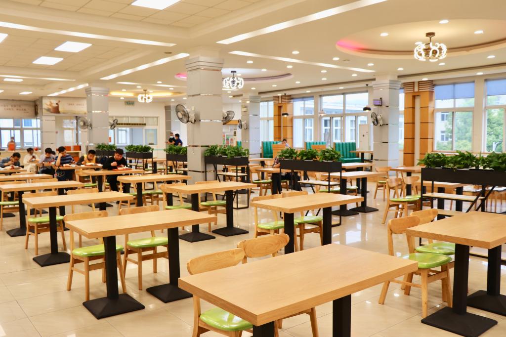 改善就餐環(huán)境,提升服務(wù)品質(zhì)。集賢二樓休閑風(fēng)味廣場環(huán)境優(yōu)化升級(jí),合理布局空間,置換木質(zhì)桌椅,更新大廳立柱和燈光,并加設(shè)多種類型餐位,為學(xué)生提供多元化的就餐選擇,餐廳內(nèi)外增加名人名言、文明用語,精心打造書味、香味、情味、品味“四味合一”的文化氛圍,營造溫馨舒適的就餐環(huán)境。衣錦二樓教工餐廳由窗口打餐模式調(diào)整為自選模式,菜品分區(qū)售賣,就餐區(qū)域配置了木質(zhì)桌椅,翻新大廳吊頂,加裝新燈具,提高了整體明亮度,進(jìn)一步提升師生的就餐體驗(yàn)。
