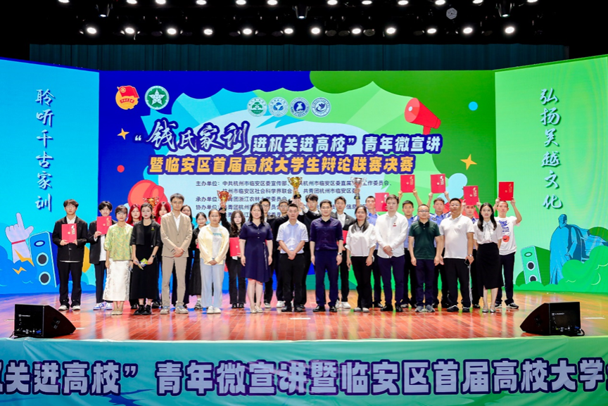6月26日晚,“錢(qián)氏家訓(xùn)進(jìn)機(jī)關(guān)進(jìn)高校”青年微宣講暨臨安區(qū)首屆高校大學(xué)生辯論聯(lián)賽決賽在我校東湖校區(qū)舉辦。臨安區(qū)委宣傳部部務(wù)會(huì)議成員、社科聯(lián)主席沈向榮,臨安團(tuán)區(qū)委書(shū)記季煜程,浙江農(nóng)林大學(xué)團(tuán)委書(shū)記魏玲玲,臨安區(qū)委組織部副部長(zhǎng)羅莉娜,杭州醫(yī)學(xué)院團(tuán)委副書(shū)記黃河儒,杭州電子科技大學(xué)信息工程學(xué)院團(tuán)委副書(shū)記俞霖楠,第一屆杭州辯論邀請(qǐng)賽季軍李振龍出席活動(dòng)。