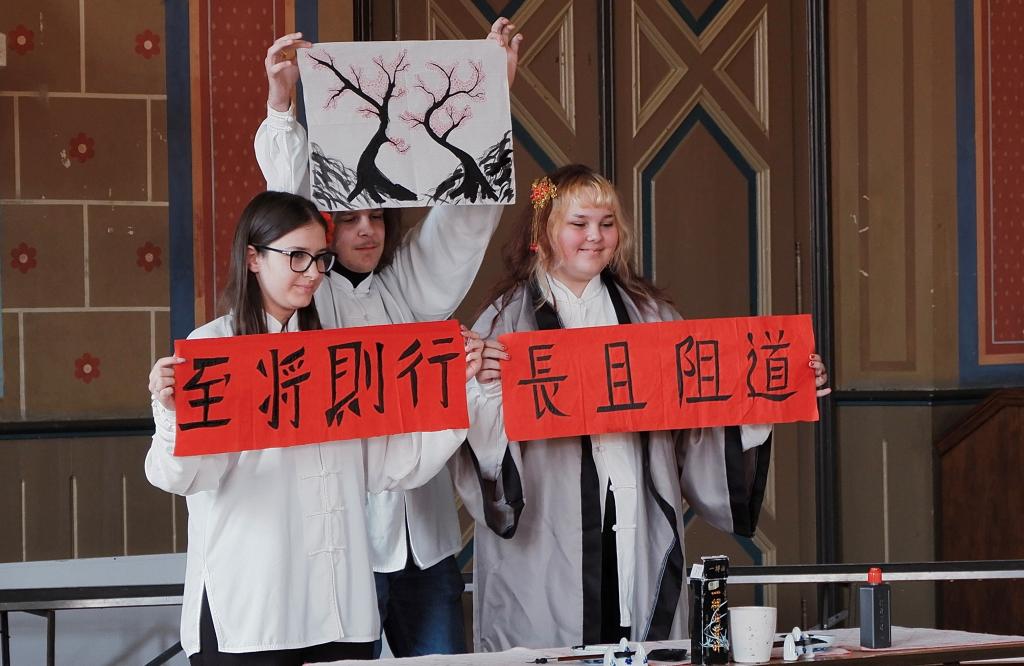 伊萬娜·捷萬契維奇·塞凱露絲在致辭中表示,中文不僅是聯合國六種官方語言之一,而且是世界上使用人數最多的語言,中國地域廣闊、文化博大精深,希望此次慶祝活動能幫助學習中文的學生更好地理解中國文化,同時希望有更多的年輕人對中文、中國文化產生興趣。陳晦在致辭中表示,語言是對話交流的主要工具、增進相互了解的關鍵鑰匙,也是傳承文明的重要載體,作為一個開展中文教學的教育機構,諾大孔院愿意為駐在地學生學習中文提供資源,幫助同學們留學中國、實現夢想。布蘭科?斯托基科沃在致辭中感謝諾大孔院合辦此項活動。他表示,中文是一門擁有幾千年歷史的語言,卡爾洛夫茨高中非常榮幸能有中國老師長期執教中文,希望同學們好好珍惜學習機會,增進中文知識,擴展國際視野,不斷提高中文水平,為今后前往中國深造打好基礎。