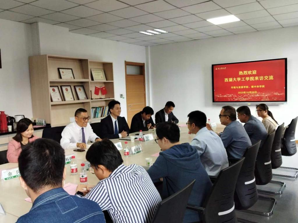 環資院、碳中和學院院長馮華軍、黨委書記侯錫銘對西湖大學工學院來訪表示熱烈歡迎。雙方介紹了各自學院情況。隨后,雙方科研團隊進行了學術匯報與交流,會場討論氣氛活躍。