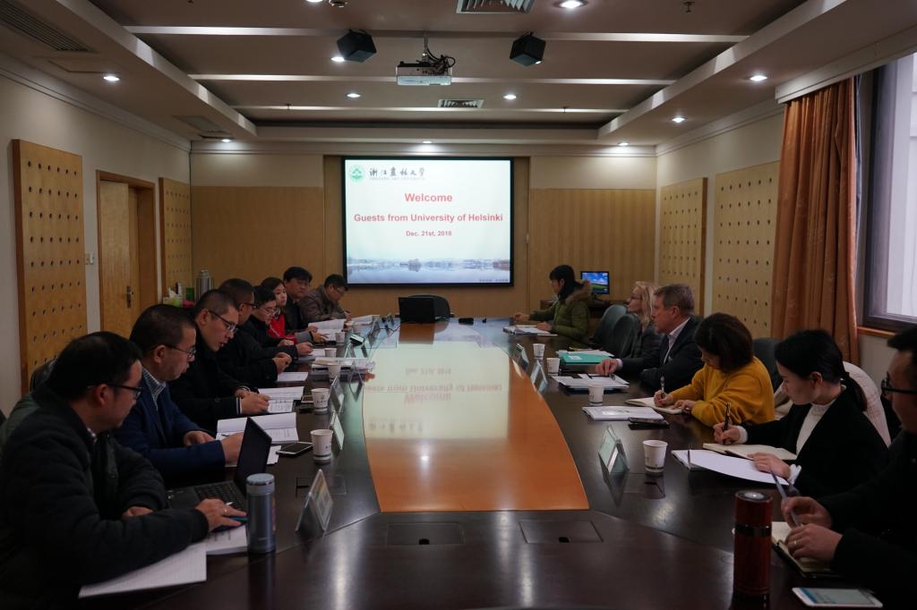 Helena Korpelainen教授介紹了即將與學(xué)校展開合作的研究生項目,雙方將聯(lián)合培養(yǎng)農(nóng)林方向的碩士研究生。雙方還商議了即將開展合作的赫爾辛基大學(xué)暑期項目,并探討了成立可持續(xù)發(fā)展聯(lián)合實驗室的可能性。